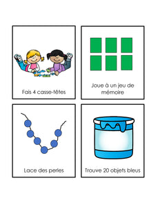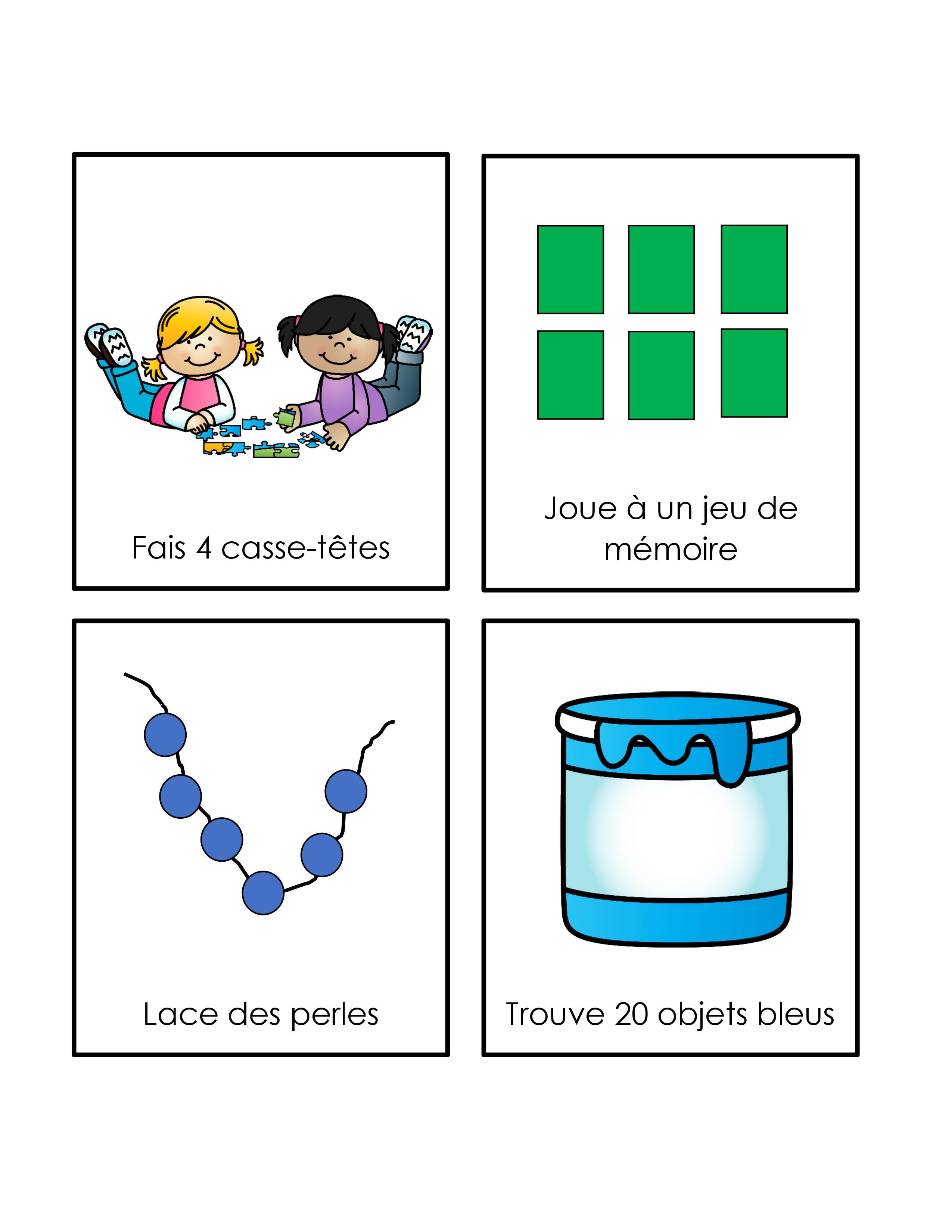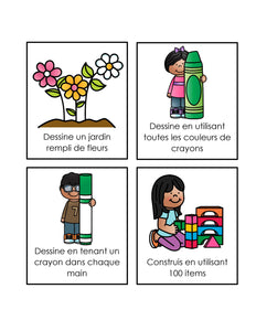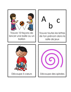L'ensemble comprend 100 cartes illustrées, chacune proposant un jeu ou un défi pour les enfants de 4-6 ans.